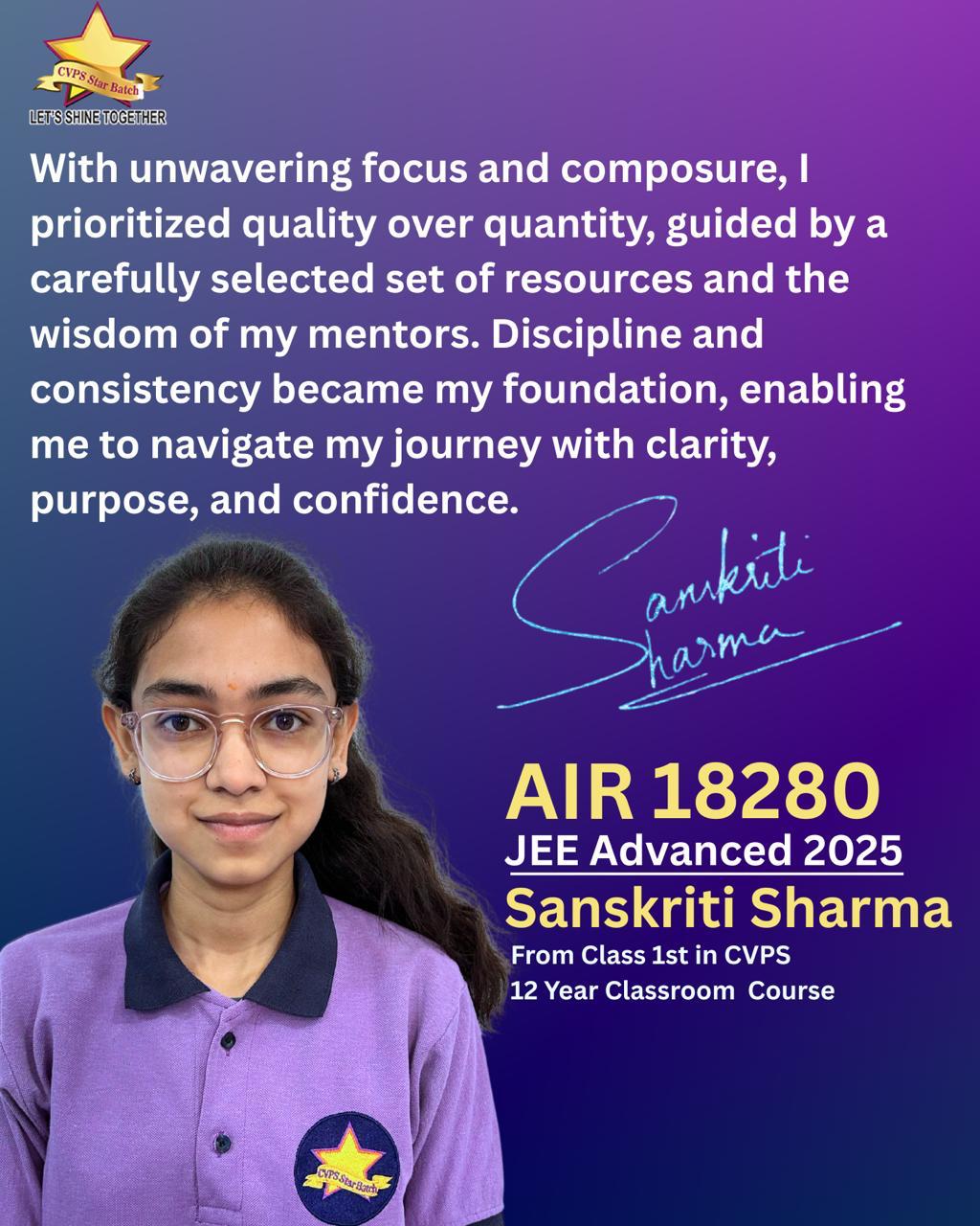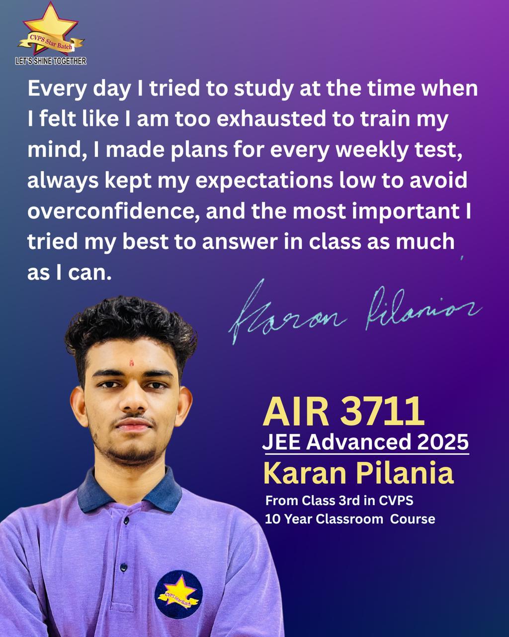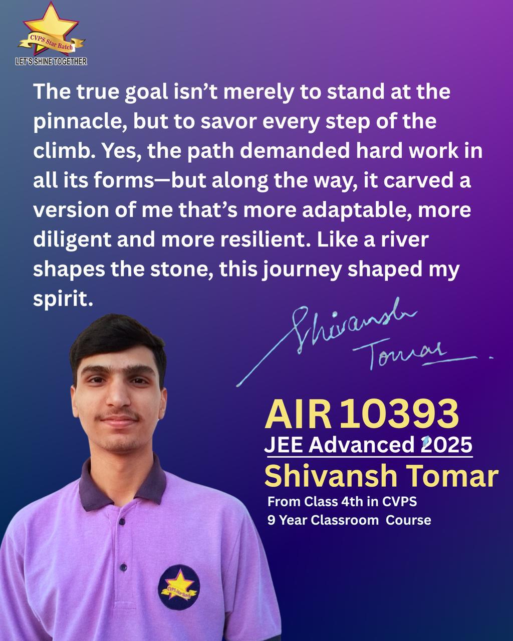 CVPS takes immense pride in its academic achievements. In CBSE Class XII Board Results 2025, Karan Pilania, a proud student of the Science stream, secured an outstanding Rank 1 position in with 99.8%, standing as a shining example of dedication, discipline, and determination.