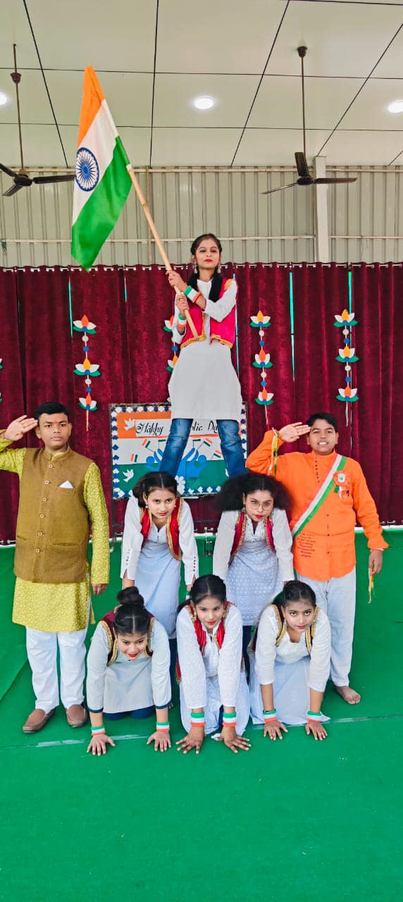 The students of the school added a musical touch to the celebration with a patriotic song that beautifully blended traditional and contemporary elements, capturing the essence of India's rich cultural tapestry. The cultural spectacle soared to new heights with captivating dance performance that showcased the vibrant costumes, rhythmic beats and graceful movements united to paint a vivid picture of our nation's cultural mosaic, leaving the audience spellbound, instilling pride in India's rich heritage.