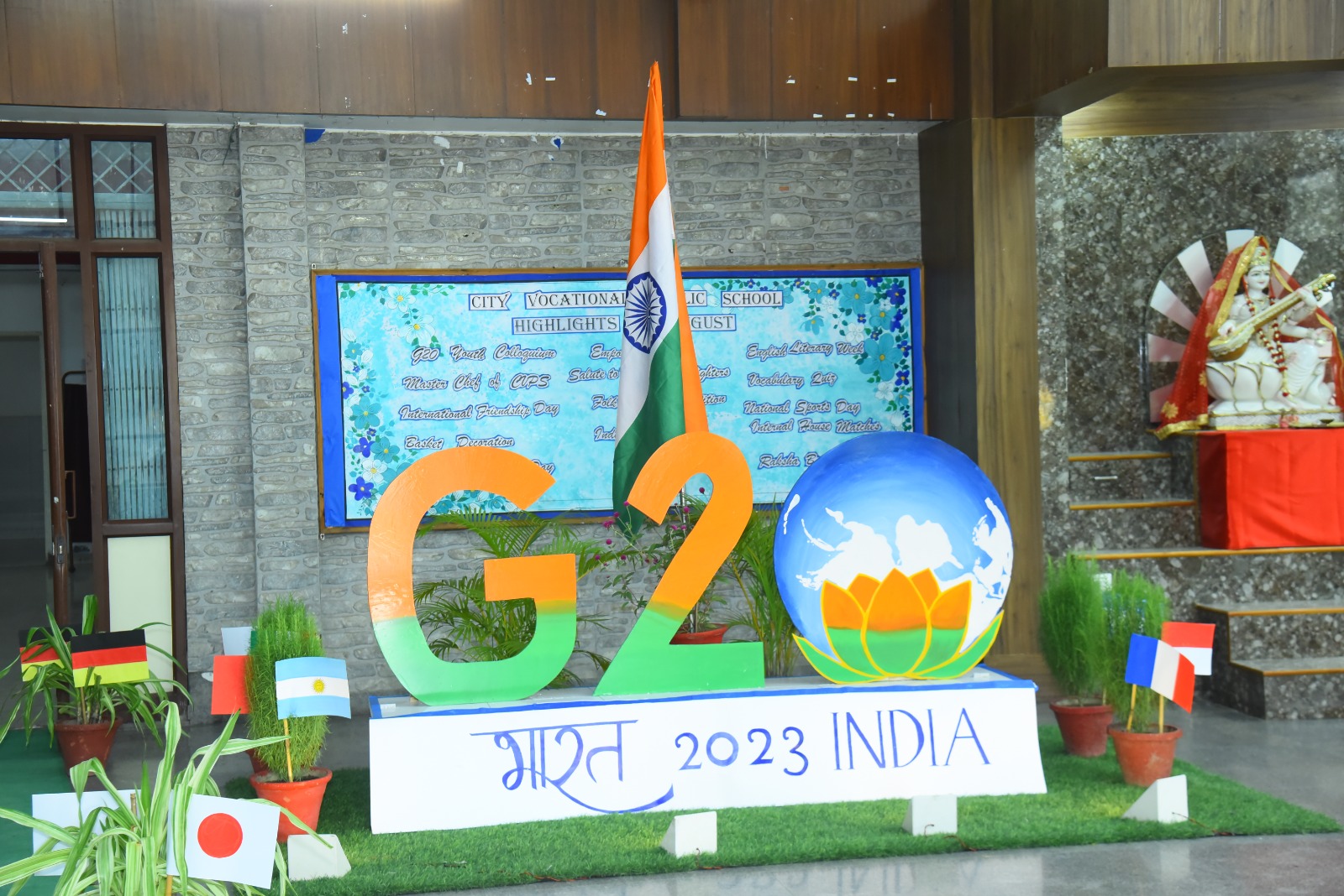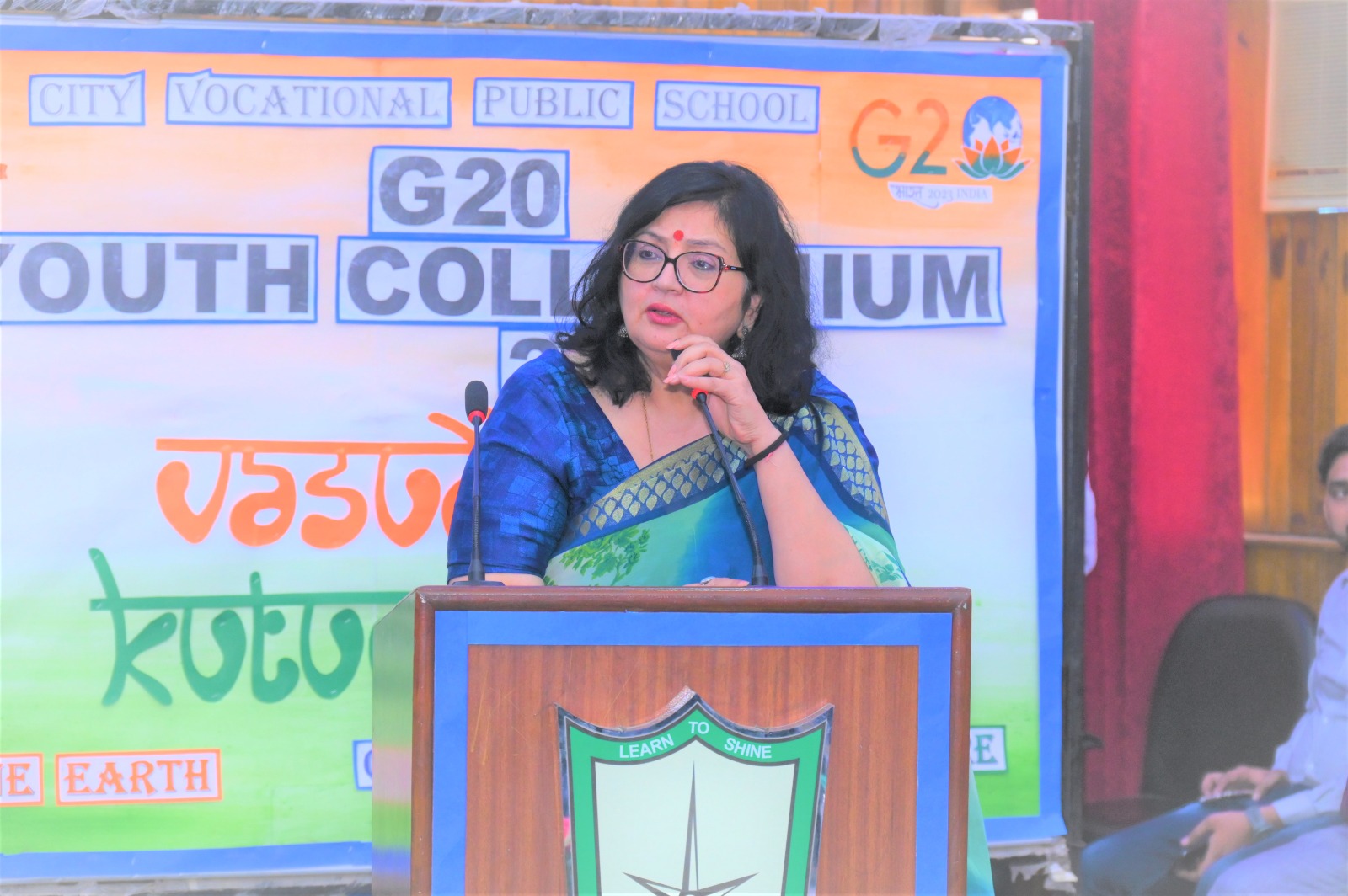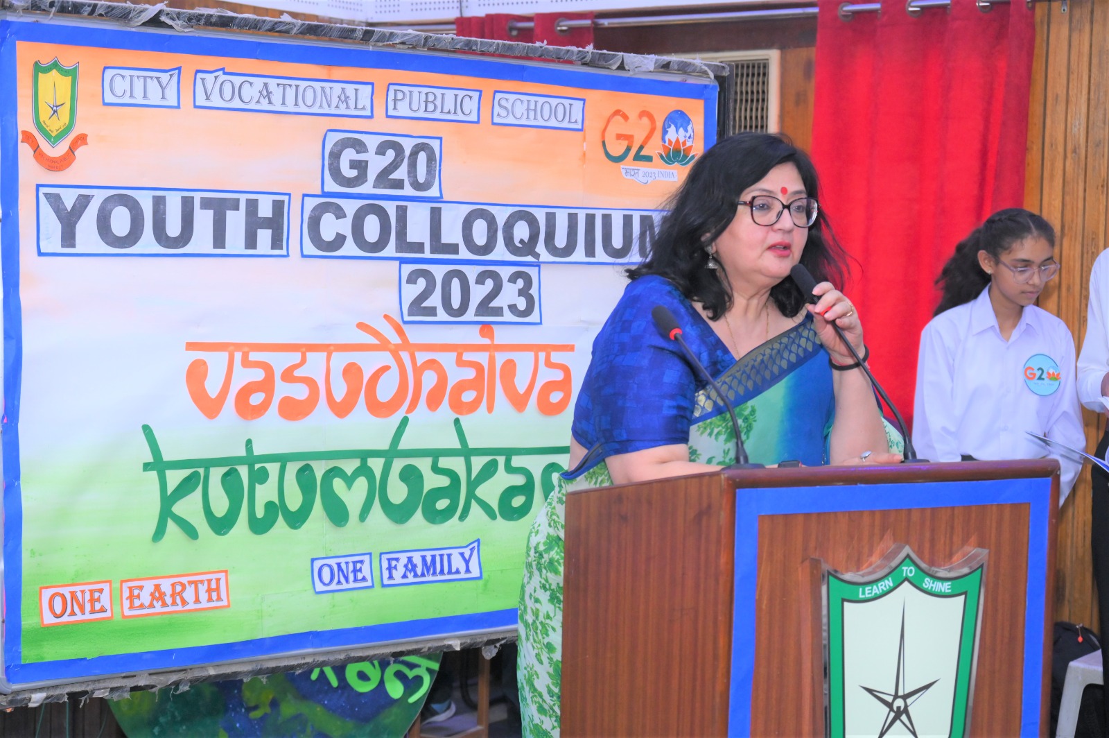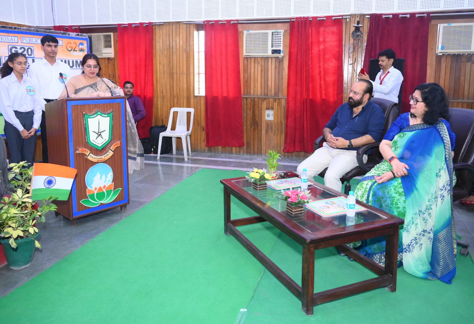 City Vocational Public School took these words and delivered an example by organizing G20 Youth Colloquium , on Wednesday 9th August 2023 , in the School Auditorium . The event became a massive success with the overwhelming enthusiasm of the attendees and the presence of our esteemed Chief Guest Dr. Sanjay Sharma , a renowned Neurologist of western UP, Hon'ble School Management and the School Principal Mrs. Anita Tripathi .