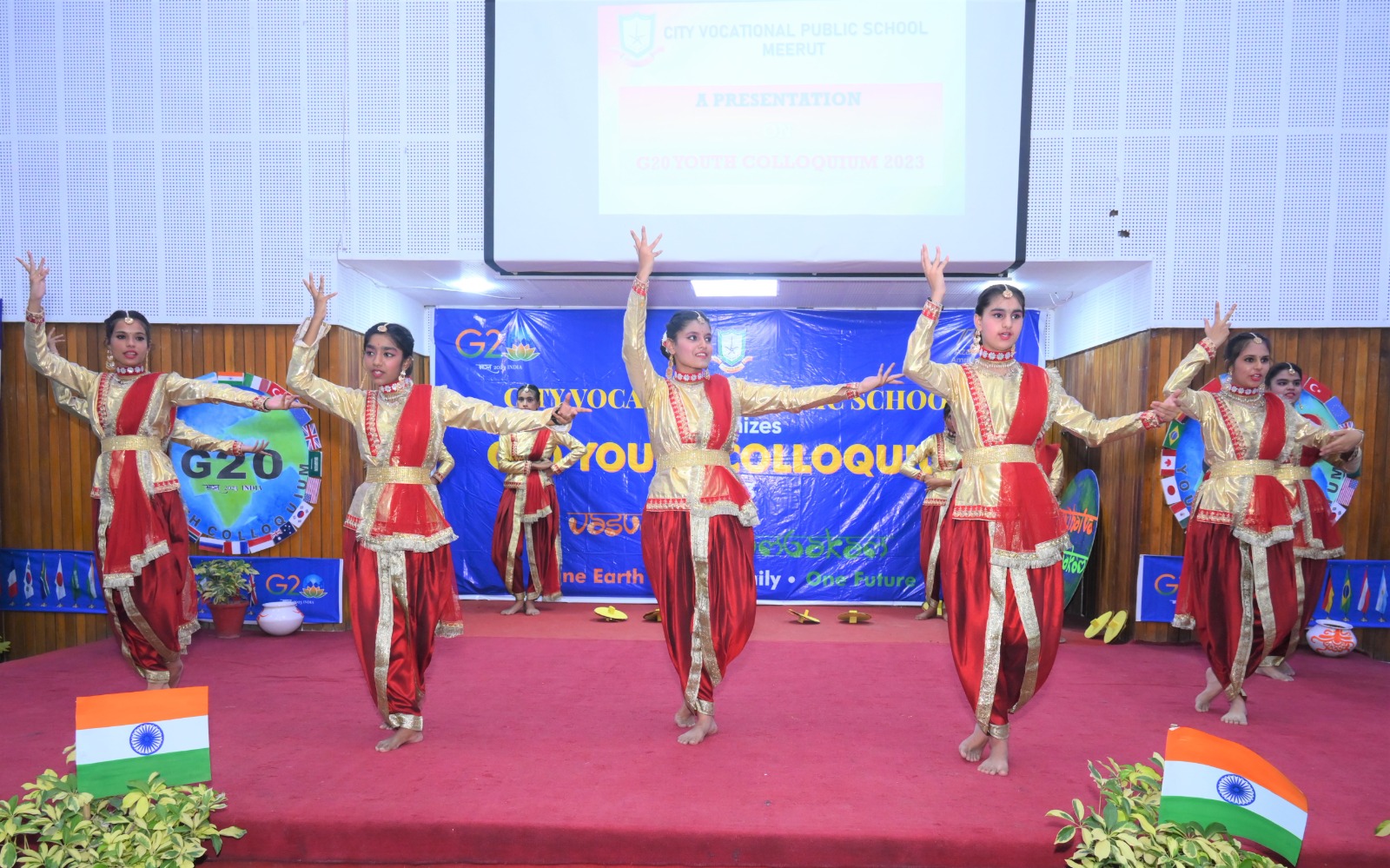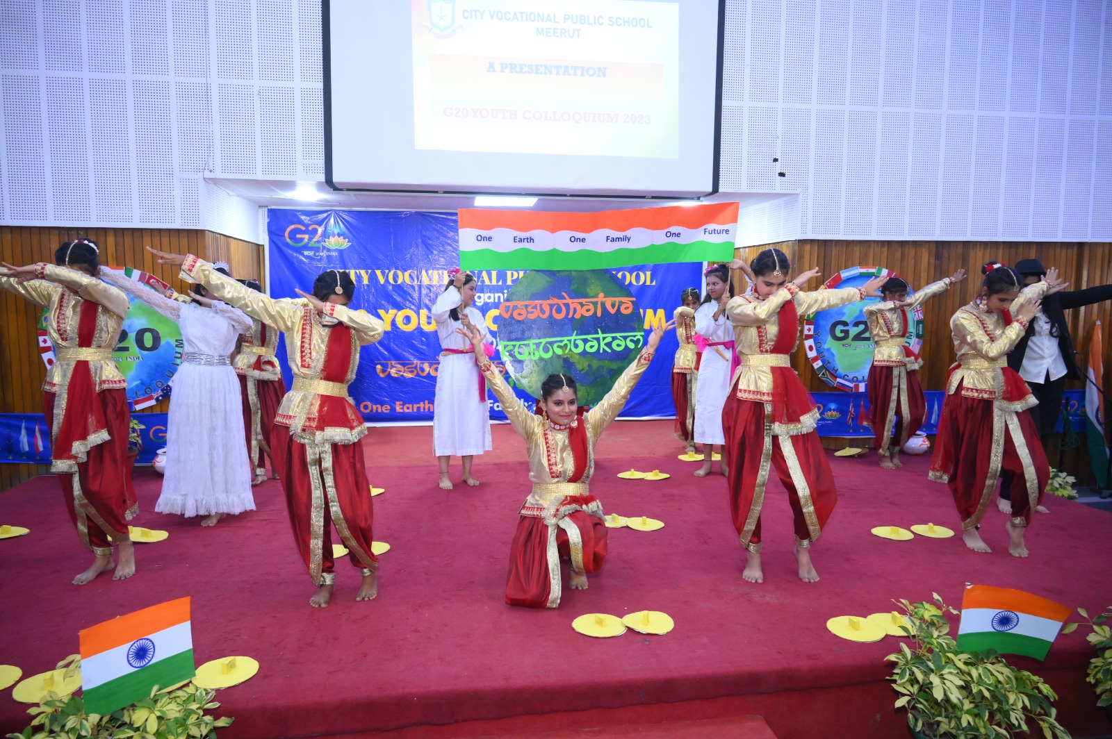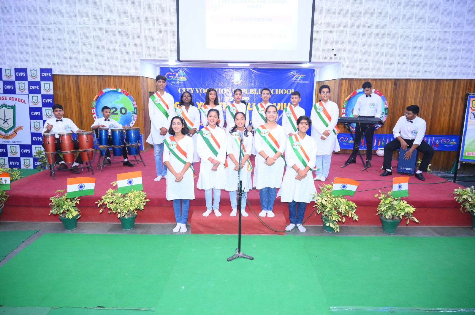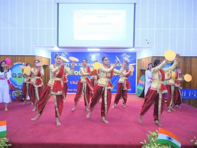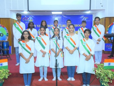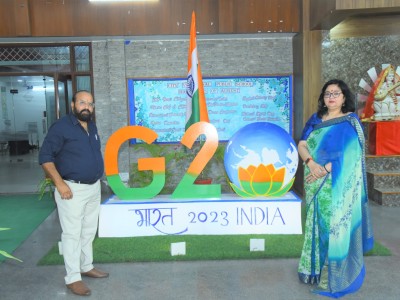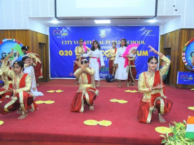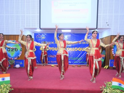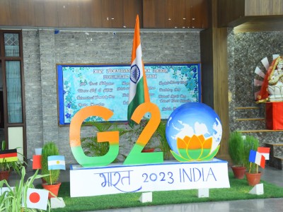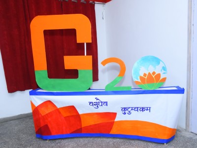 The event flagged off with invoking the blessing of the Almighty, followed by a presentation on G20 . The speakers at the event indulged with the students in an interactive session , which was an eye opener for all and the queries from a bunch of curious minded students revealed how aware they are about the present day relevant issues . The flattering dance performance and the band performance on the theme of Vasudeva kutumbakam , were the highlight of the day .