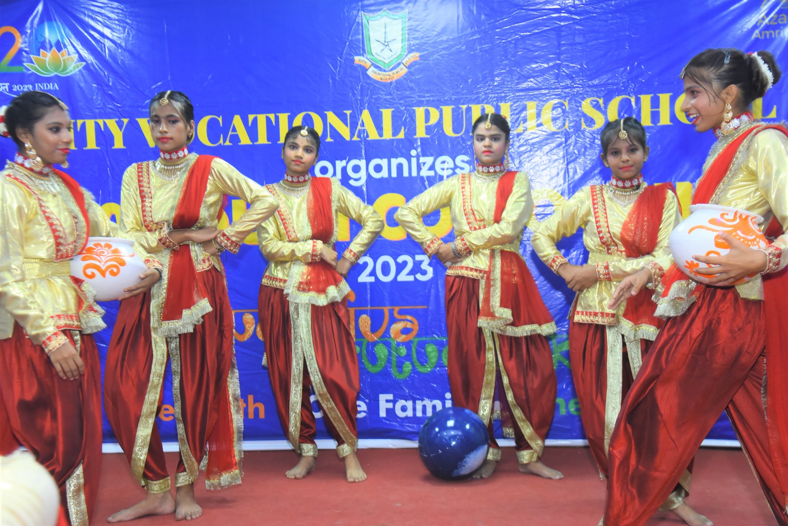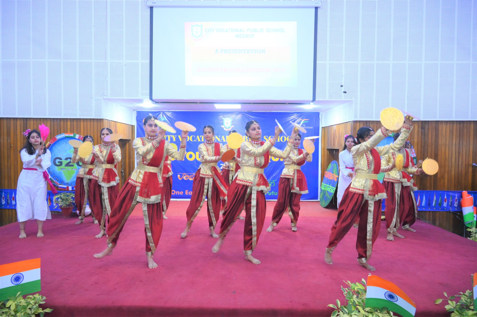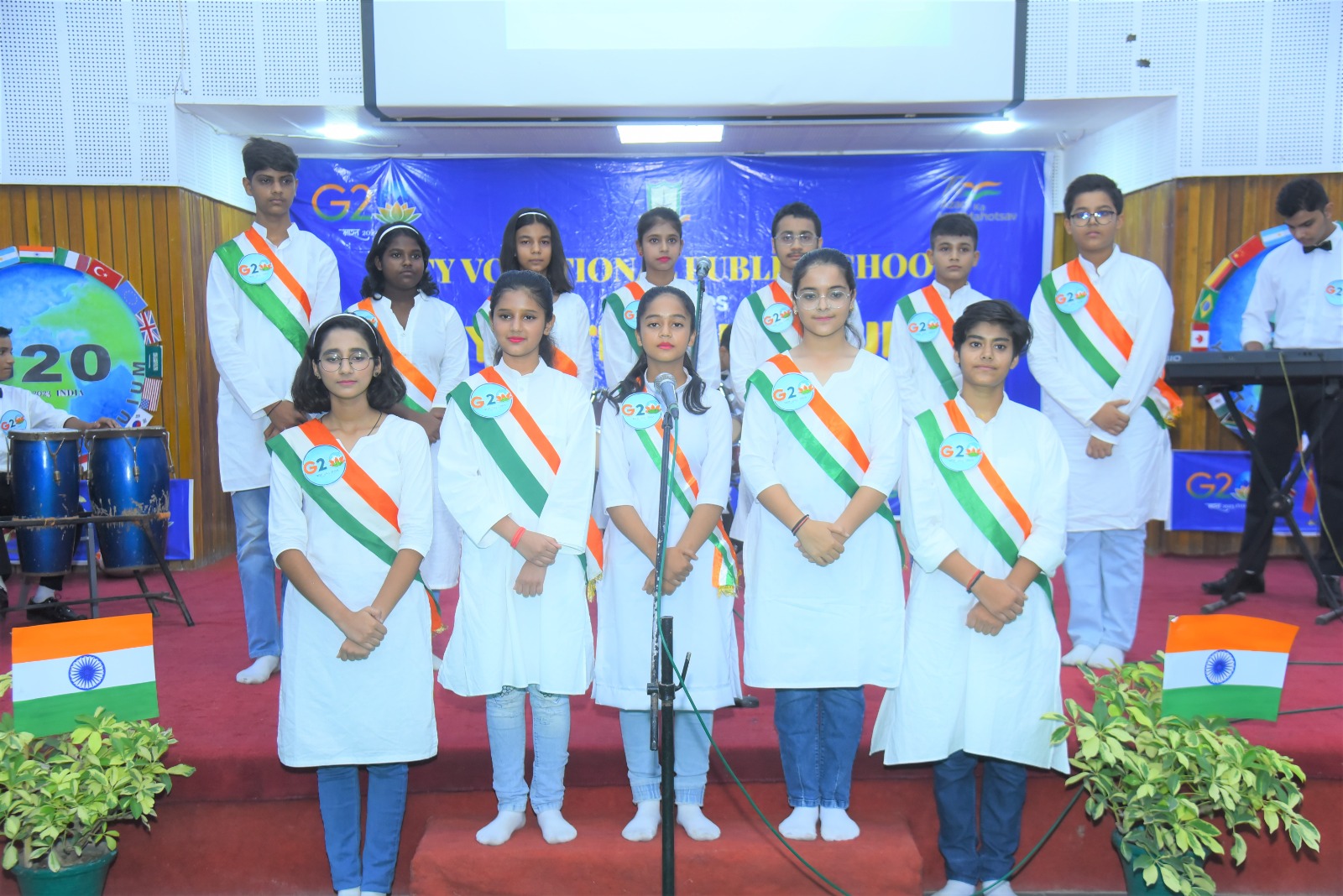 The event flagged off with invoking the blessing of the Almighty, followed by a presentation on G20 . The speakers at the event indulged with the students in an interactive session , which was an eye opener for all and the queries from a bunch of curious minded students revealed how aware they are about the present day relevant issues . The flattering dance performance and the band performance on the theme of Vasudeva kutumbakam , were the highlight of the day .