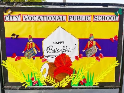 the harvest festival of baisakhi was celebrated at city vocational public school on 13 april 2023 with great fervour. Children followed the punjabi theme and came in vibrant punjabi attires. Bringing and sharing punjabi cuisine was the attraction of the day.
