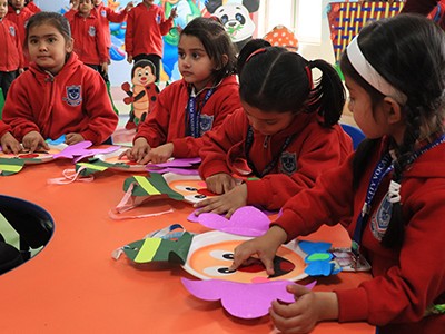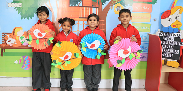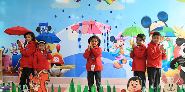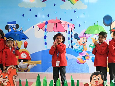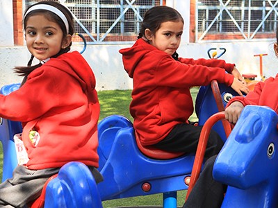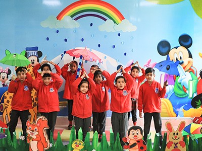 Our KG wing `Little Dolphins' is a beautiful and colourful world that cradles the tiny kids and provides them the perfect atmosphere to grow and learn in the most natural way. The aesthetic ambience of the KG wing executes a sense of comfort for the tiny tots. Swings, slides, tricycles, imported wooden toys, teaching aids, a separate play field for them are all things that provide the kids an environment where they love to come every day. They feel disappointed only on holidays and weekends and wish they would come here every day. A new beautiful play centre with kaleidoscopic colours and green turf floor is simply loved by kids. A spacious hall for their playful activities is again something they simply adore.