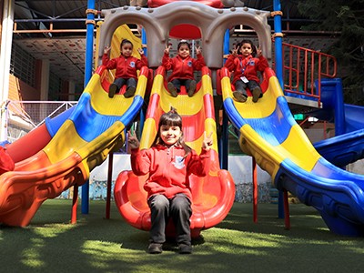 The school is housed in beautiful four wings i.e. KG, Primary, Middle and Senior. It comprises of spacious class rooms, fully lighted and airy, well-furnished labs, library and a multi-purpose auditorium. It has a beautiful ultra-modern imposing lobby comparable to the best anywhere. The beautiful lush green gardens in the school help the students to play and learn about the natural surroundings.